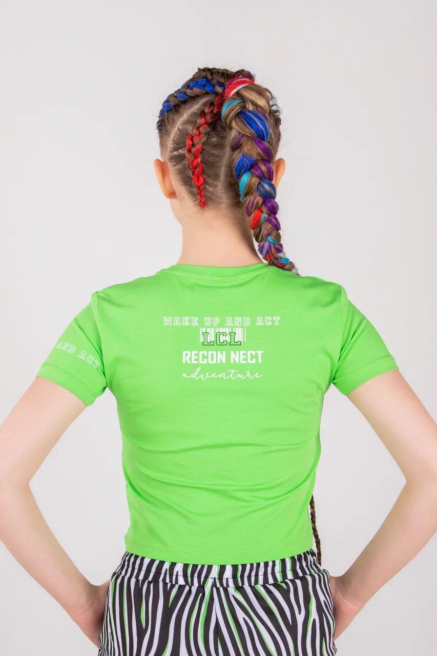 Футболка Locoloco для девочки укороченная, с округлым вырезом горловины. На футболку с двух сторон нанесен принт. Идеальный вариант для занятий спортом, для прогулок, в школу, на каждый день, для путешествий.