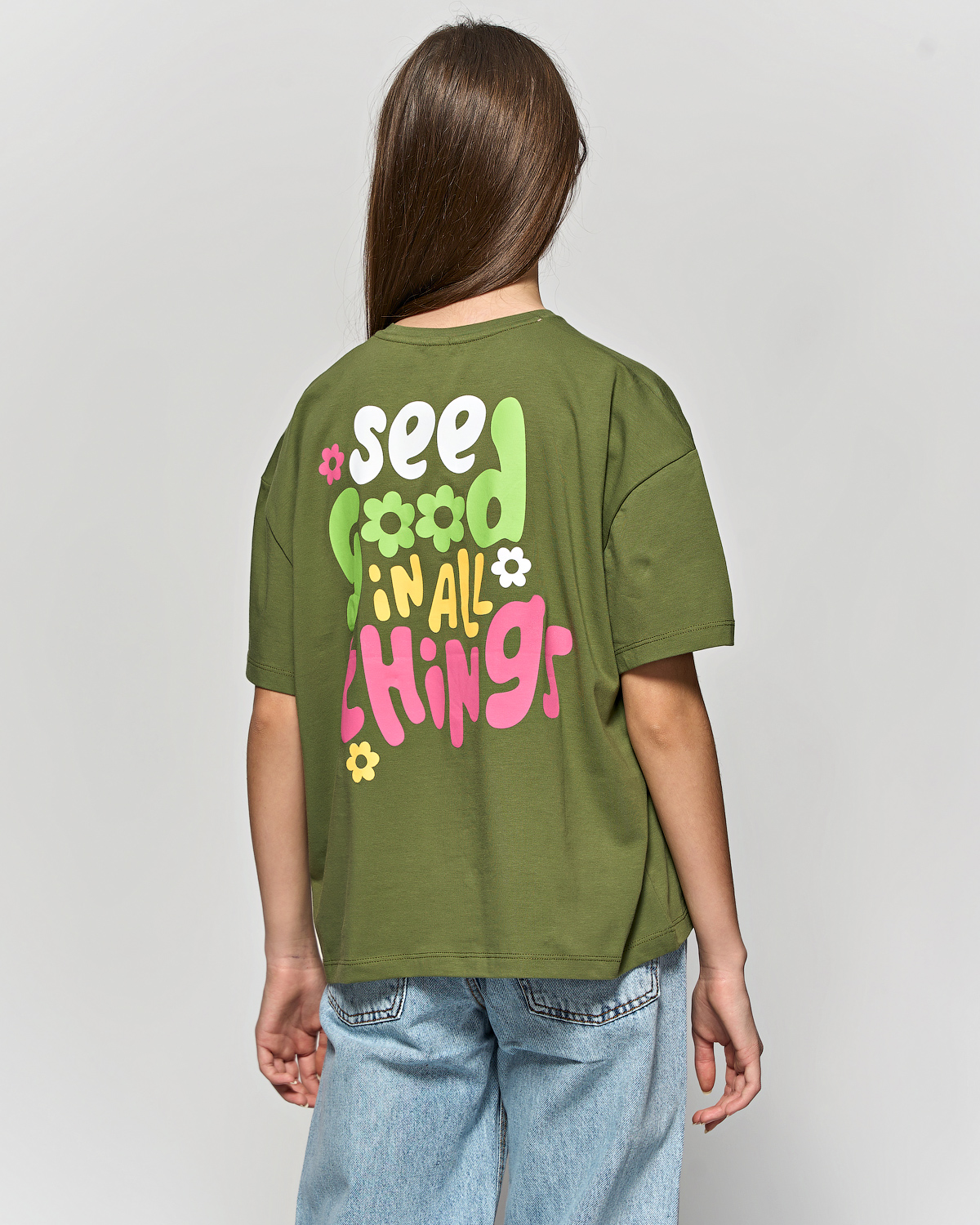 Футболка для девочки оптом Cegisa. Модель свободного кроя с коротким рукавом, с двух сторон нанесен модный и стильный принт.