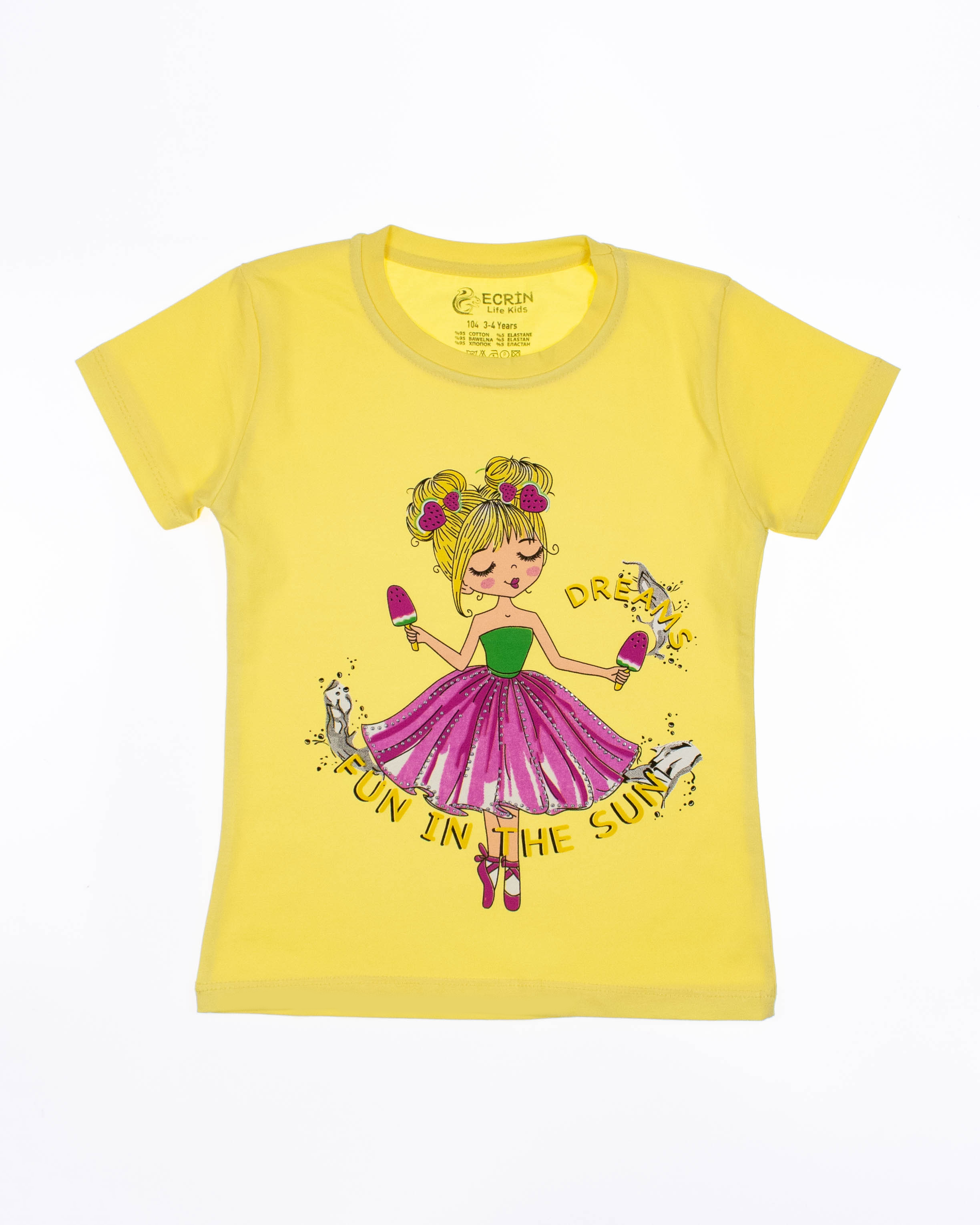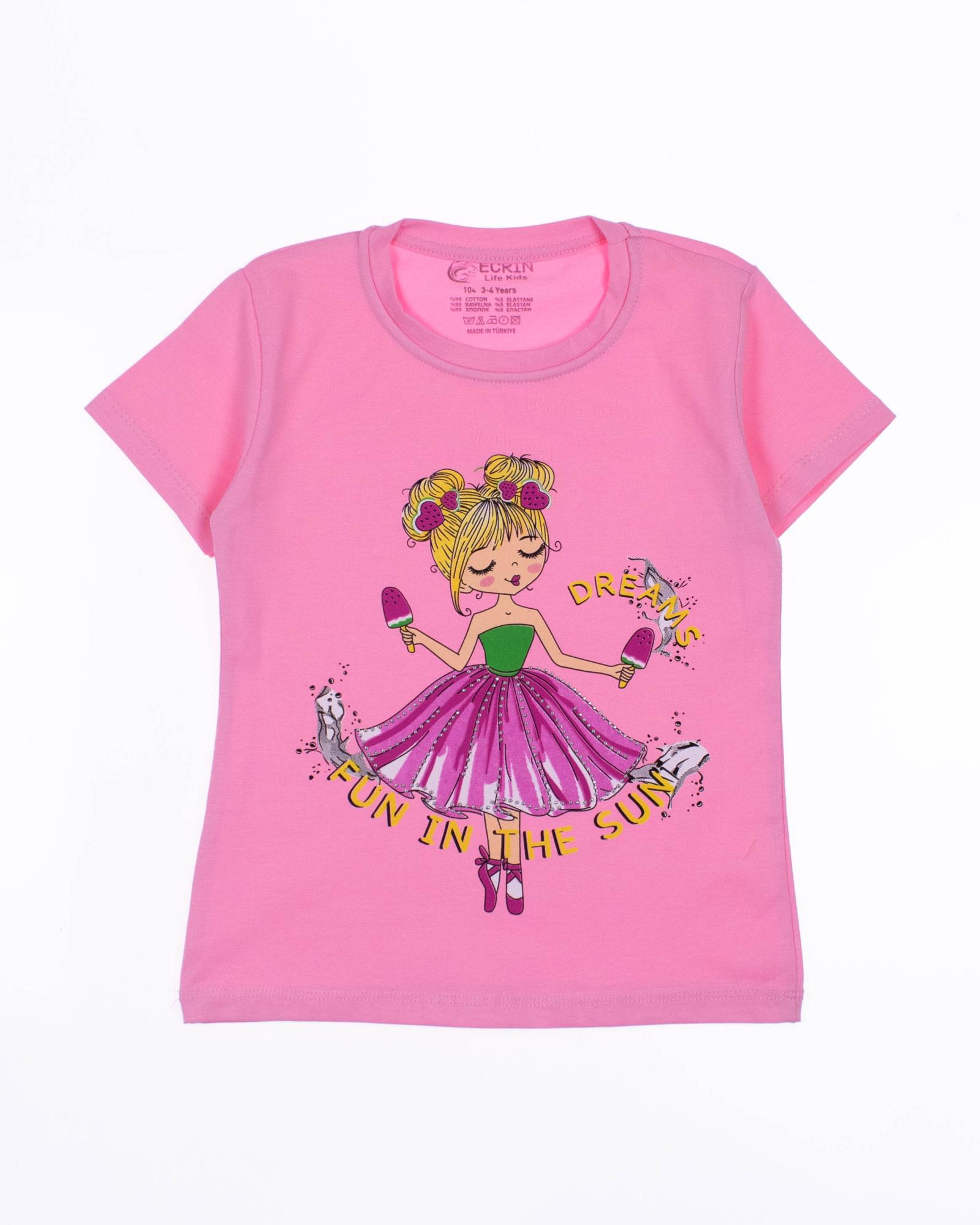 Футболка ECRIN для девочки оптом, производства Турция. Модель приталенного силуэта с короткими рукавами и милым принтом.