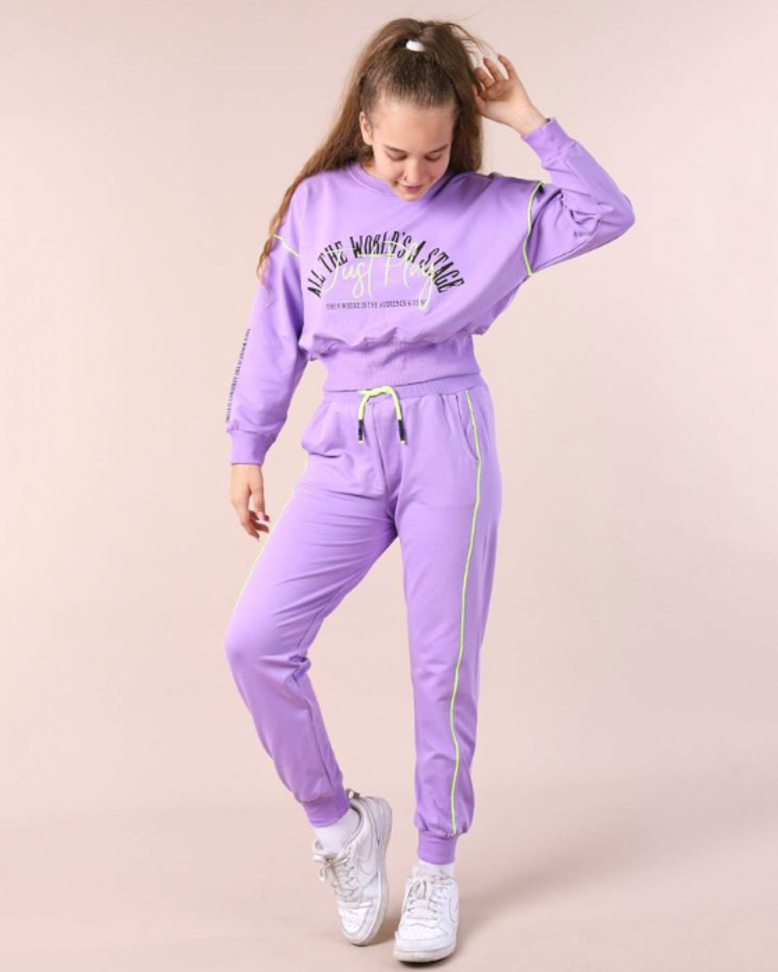 Базовый однотонный спортивный костюм для девочки из тонкого футера без начеса . Комплект одежды состоит из свитшота с принтом и брюк. Такой костюм станет отличным дополнением гардероба любой девочки как для повседневной носки, так и для занятий спортом, бегом, для физкультуры в школе, а также будет уютным, мягким домашним нарядом в прохладное время года!