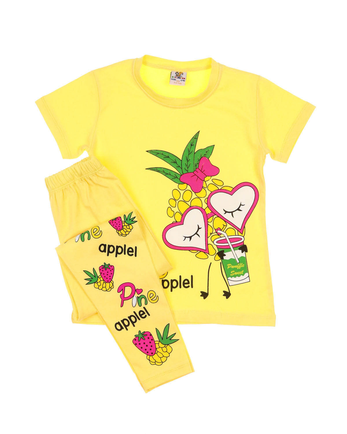 Практичный костюм для девочки оптом состоит из футболки и лосин. Горловина футболки обработана эластичной бейкой. Лосины в поясе на резинке. Костюм изготовлен из хлопкового полотна кулирка - нежного и мягкого, гипоаллергенного и легкого в уходе. Модель прекрасно подойдет для повседневной носки на улице или дома, для детского сада, а так же для активного отдыха и занятий спортом.