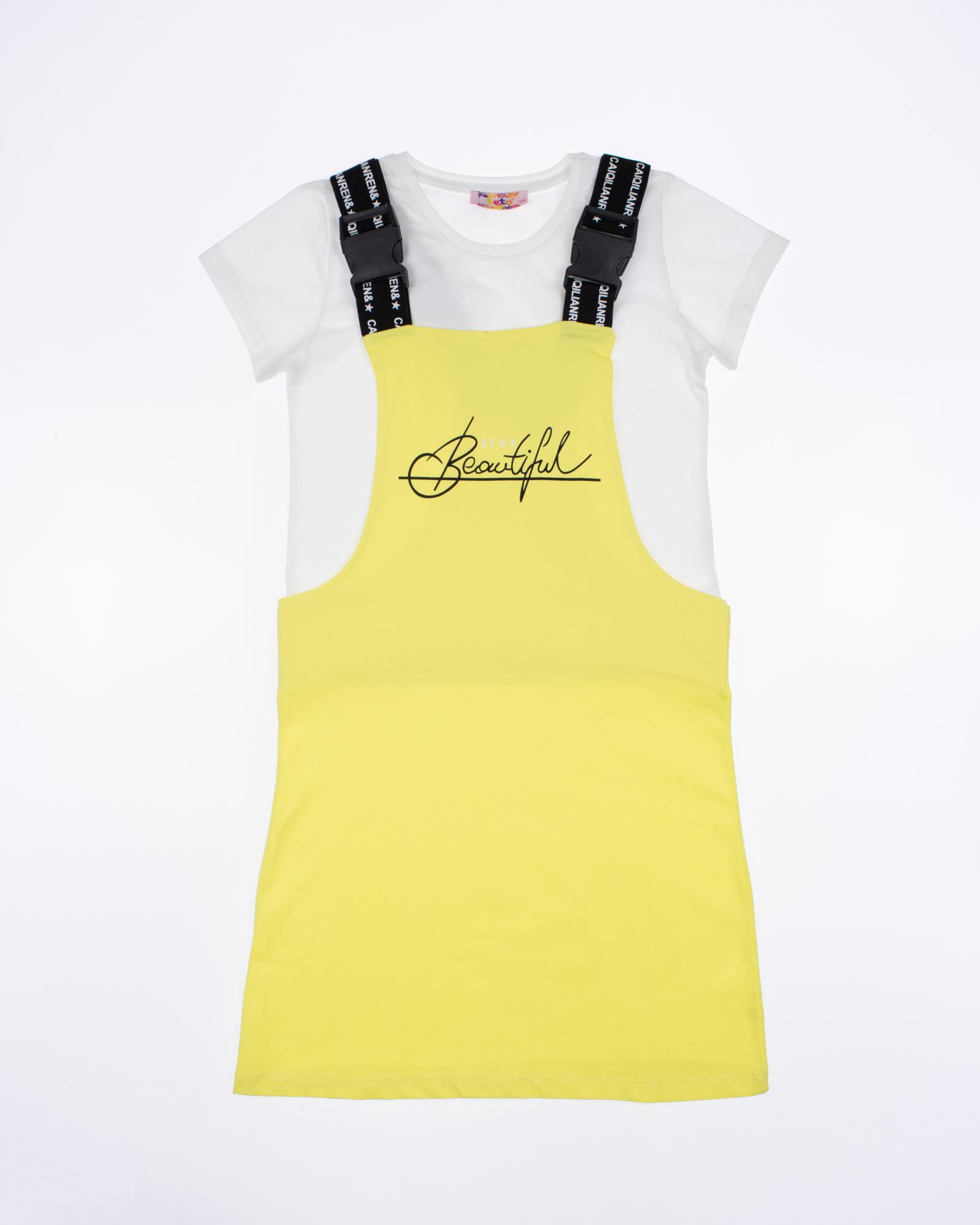 Однотонная белая футболка, Сарафан с регулируемыми лямками.