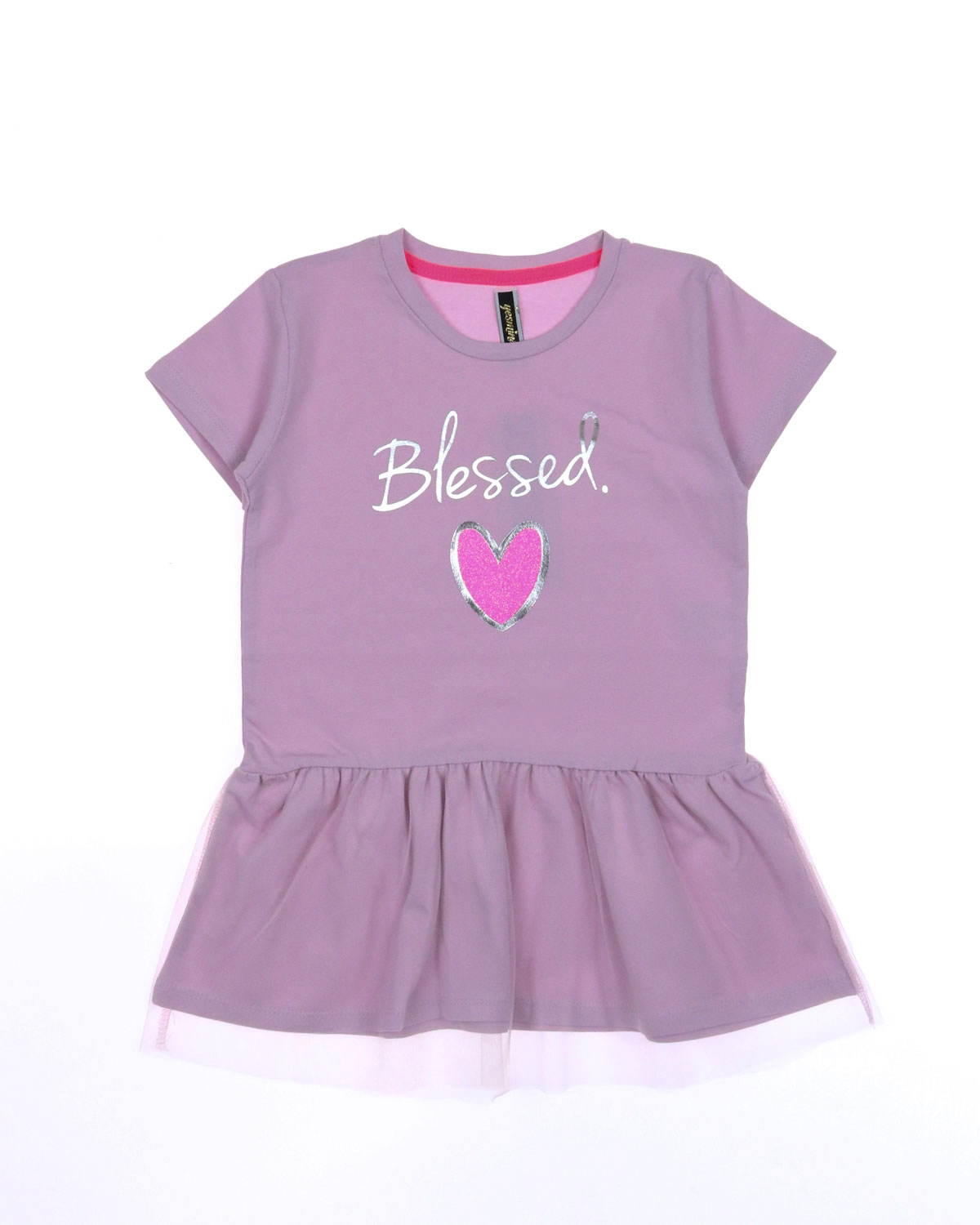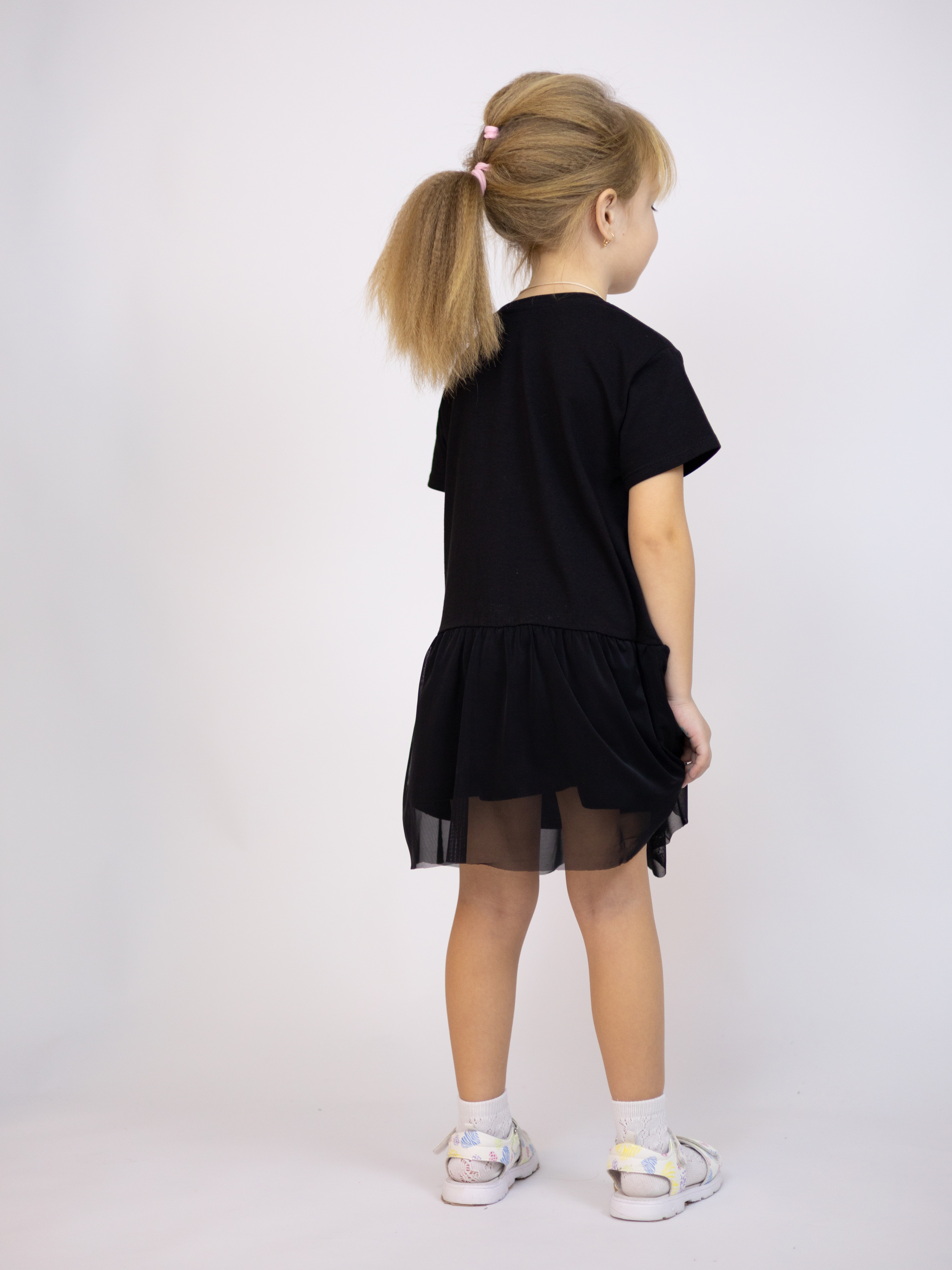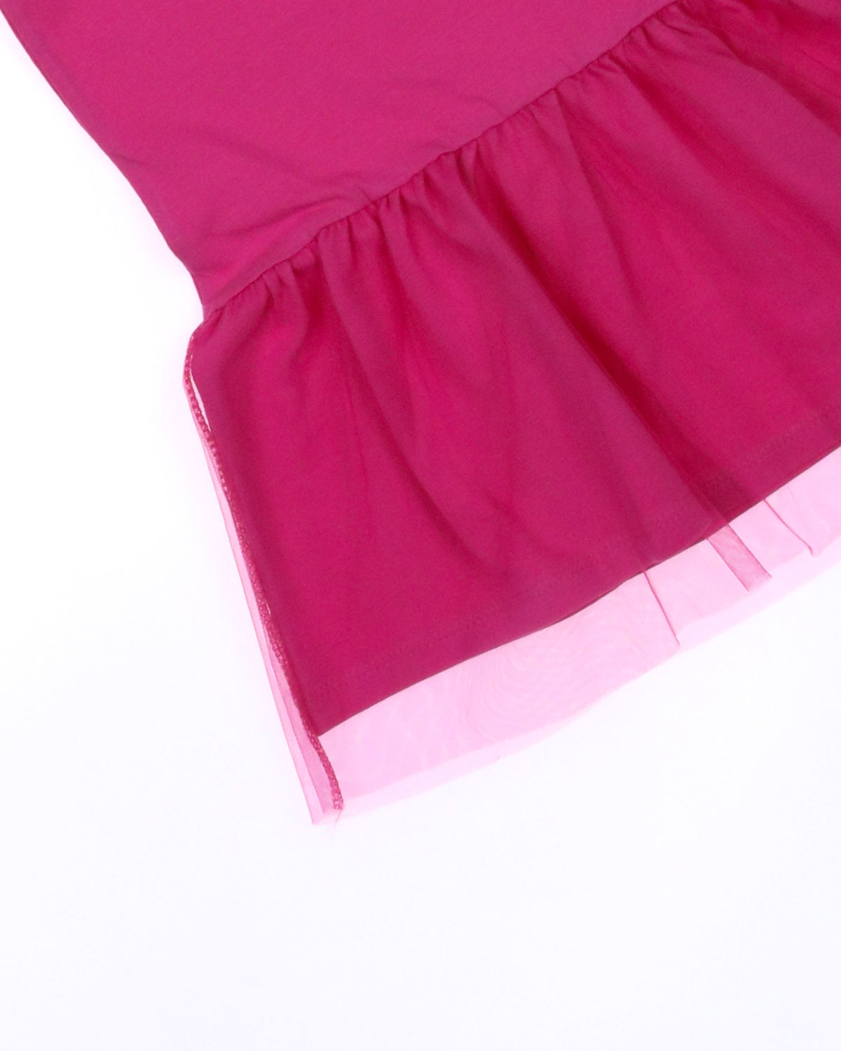 Туника YESMINA детская нужная вещь в гардеробе любой девочки. Футболка хлопковая декорирована  принтом и отрезной юбкой с сеткой. Материал - плотное трикотажное полотно яркого цвета (95% хлопок 5% эластан). Ткань очень комфортна к телу и удобна в использовании, не теряет свои свойства даже после многократных стирок. Идеальна для детского сада, утренника, похода в гости, прогулок.