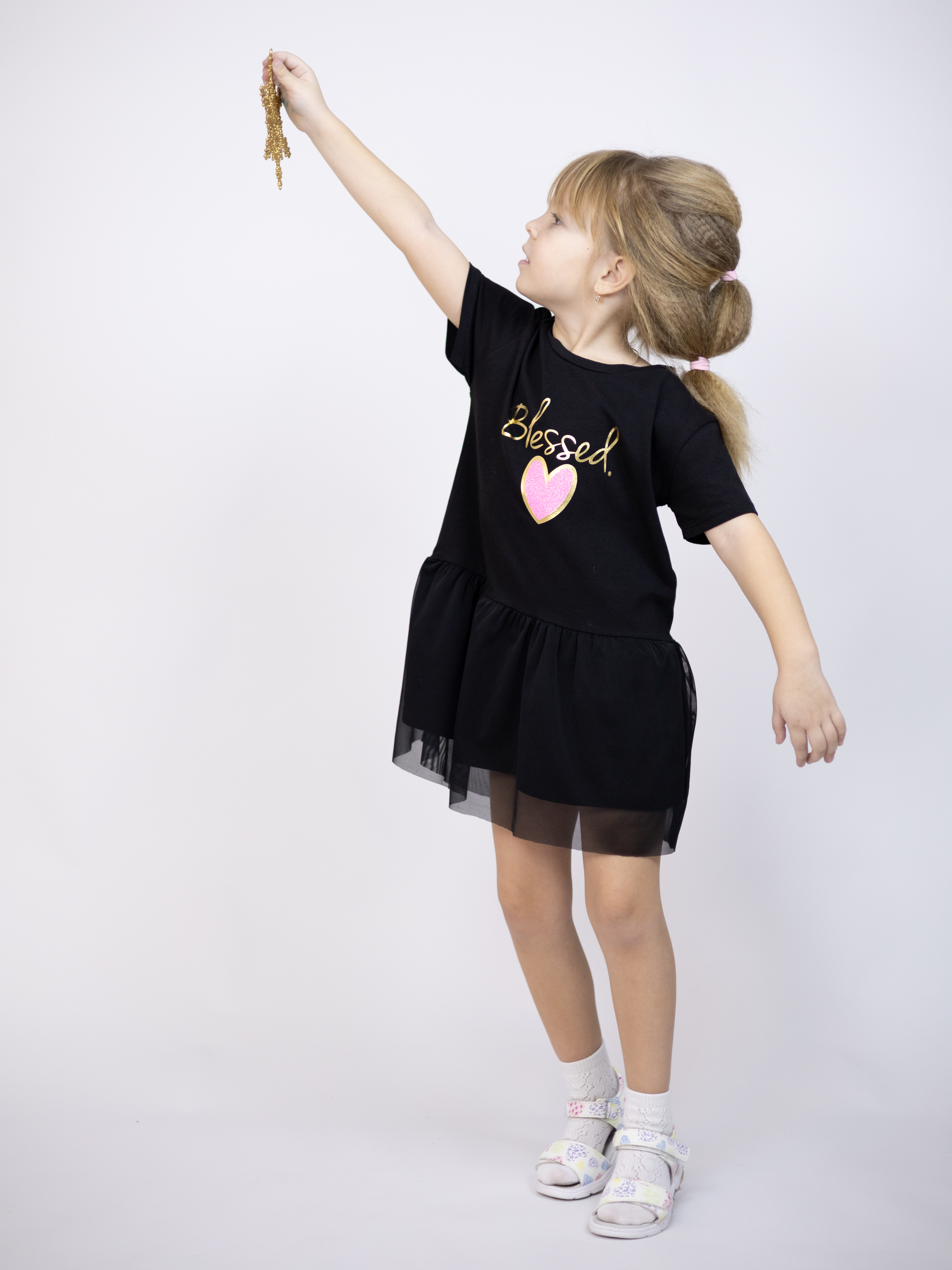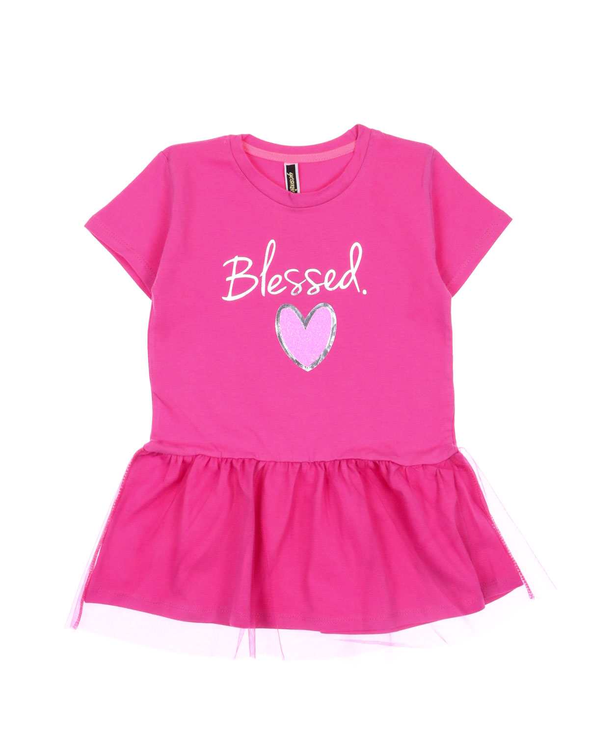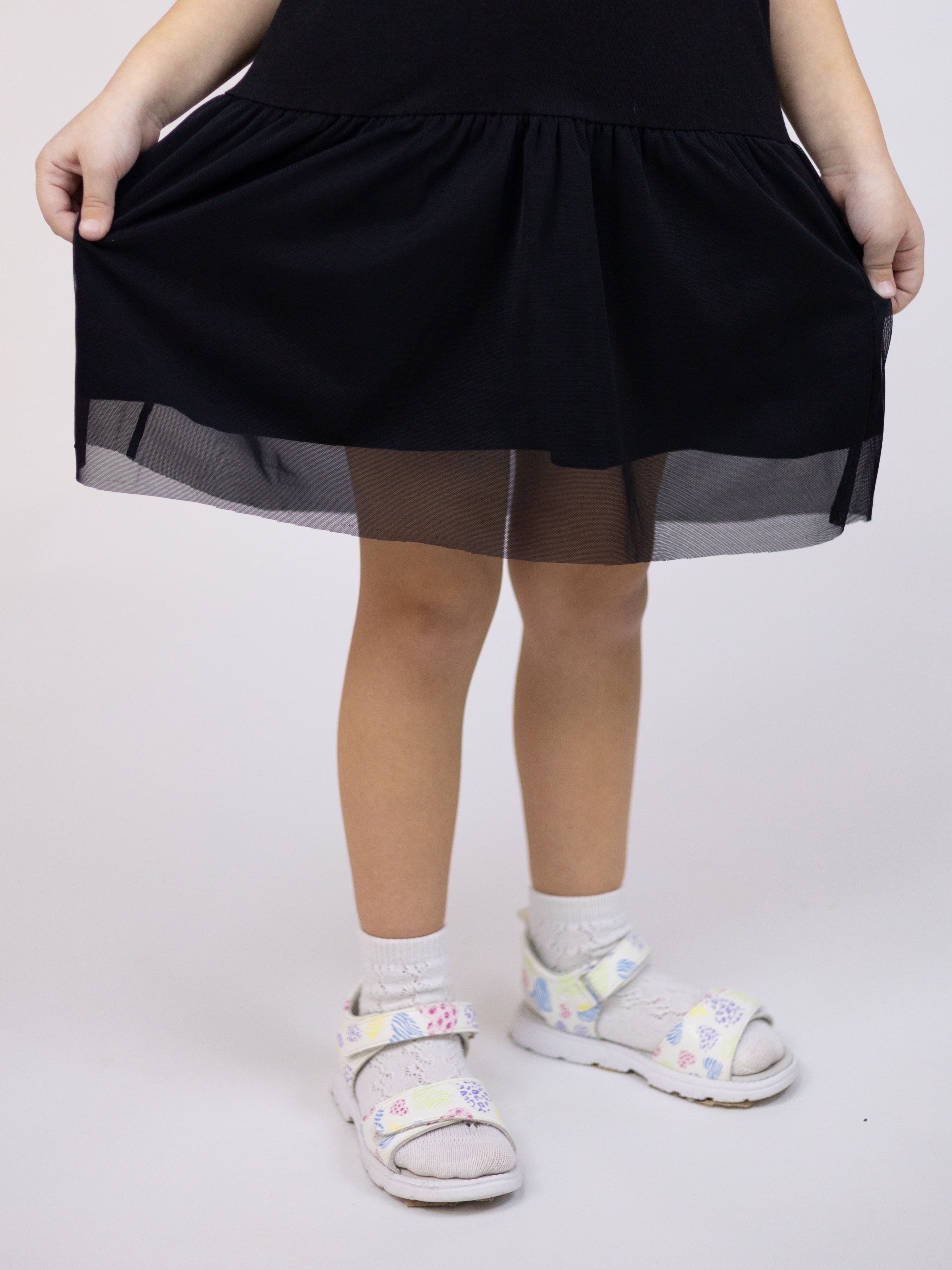 Туника YESMINA детская нужная вещь в гардеробе любой девочки. Футболка хлопковая декорирована  принтом и отрезной юбкой с сеткой. Материал - плотное трикотажное полотно яркого цвета (95% хлопок 5% эластан). Ткань очень комфортна к телу и удобна в использовании, не теряет свои свойства даже после многократных стирок. Идеальна для детского сада, утренника, похода в гости, прогулок.