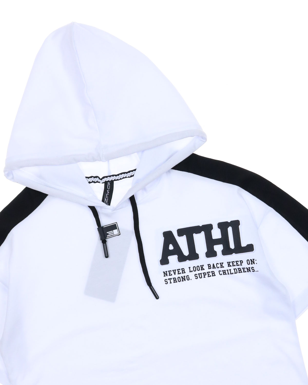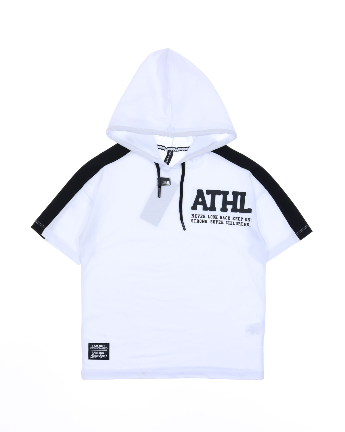 Детская футболка прямого кроя с капюшоном и выдавленным принтом, выполнена из мягкого и приятного к телу трикотажа с добавлением эластана.