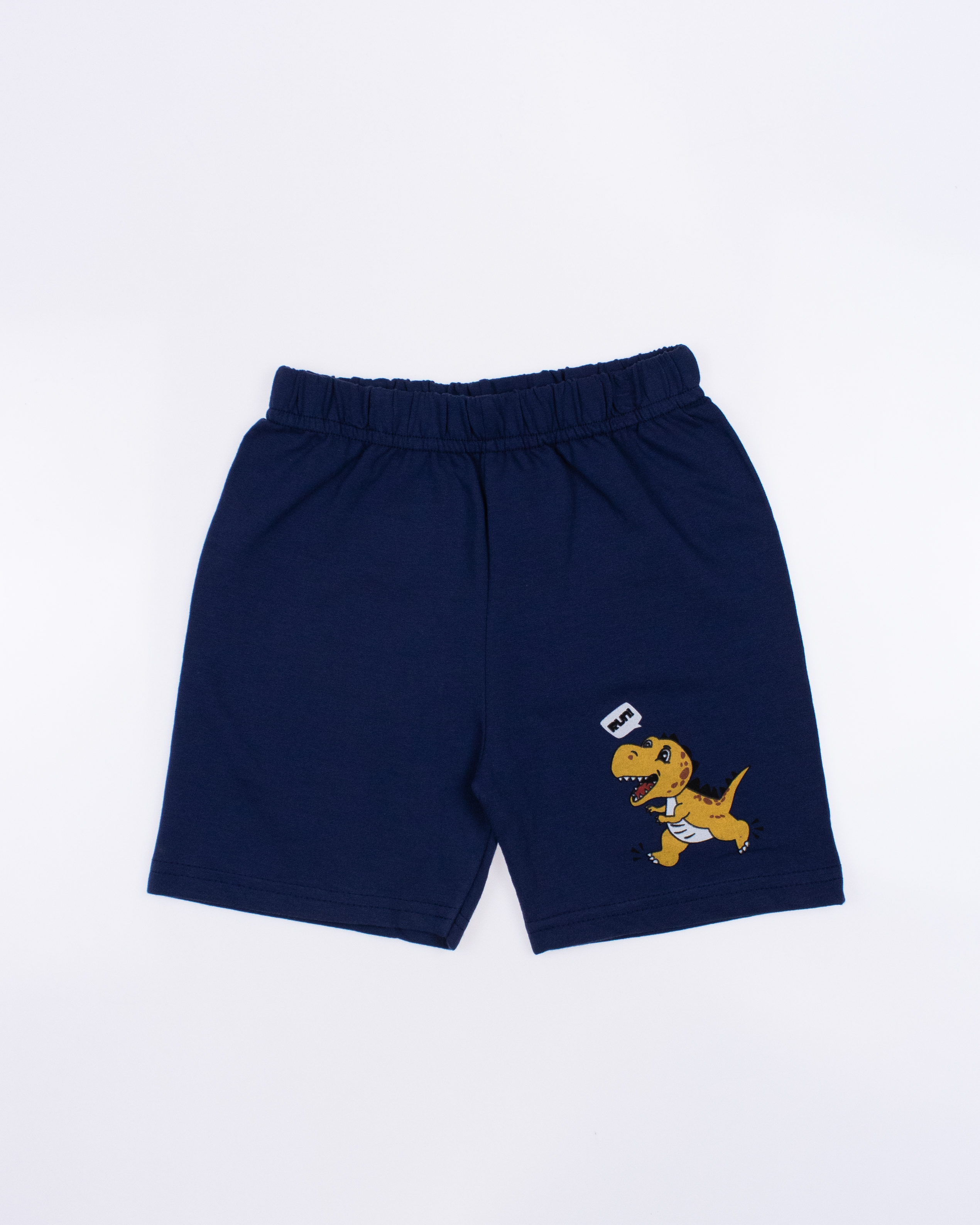 Модель выполнена из хлопкового полотна и оформлена печатным принтом. Футболка прямого кроя, с округлым вырезом горловины. Шорты умеренного объема без карманов.