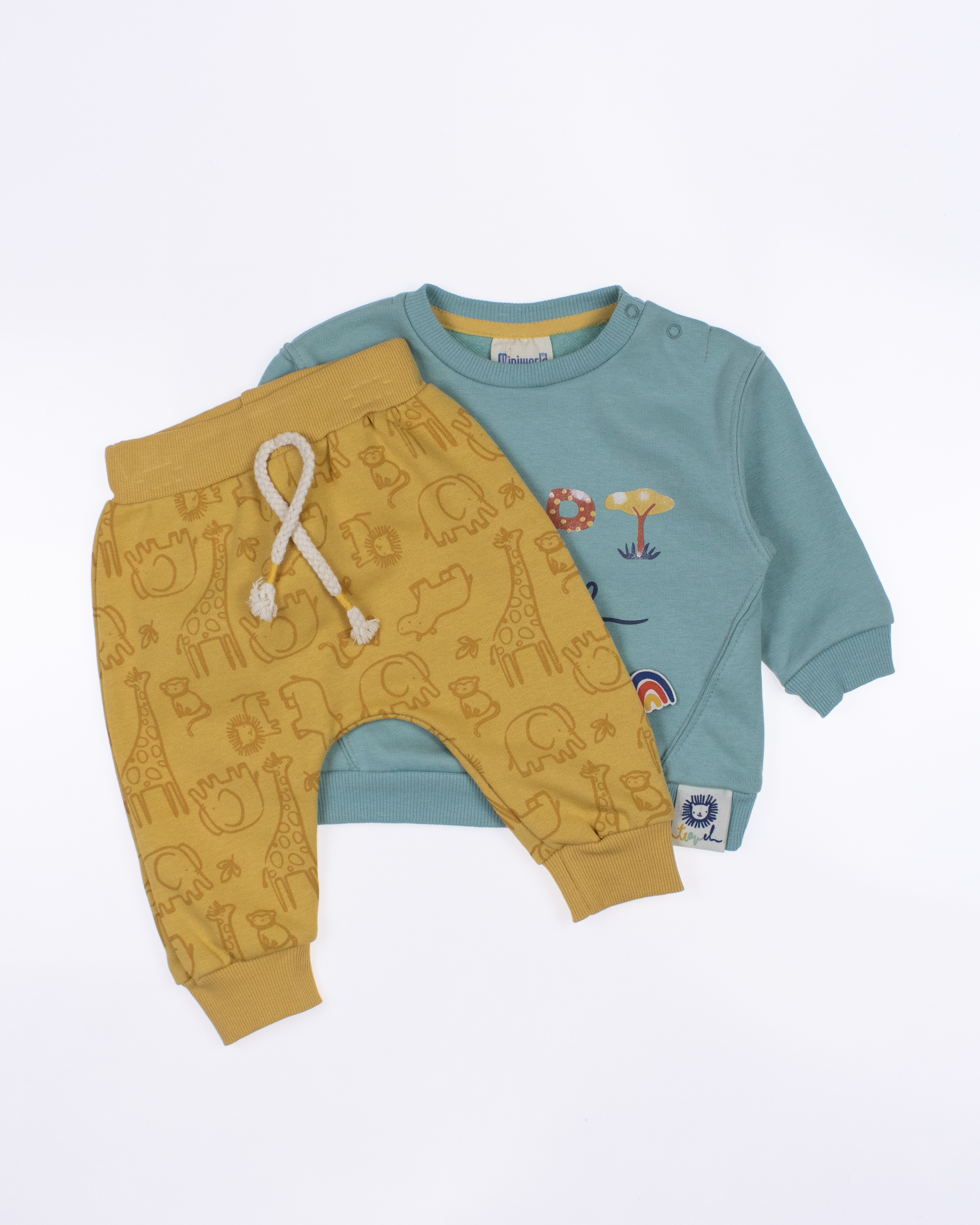 Наша компания предлагает детские костюмы MINIWORLD оптом, которые производятся в Турции. Костюм изготовлен из натурального хлопка и имеет уникальную расцветку. Кофточка имеет оригинайльный крой.  Штанишки  умеренного объема, внизу штанин есть манжеты, которые помогают фиксировать их на месте. Это не только обеспечивает удобство движения, но и предотвращает скатывание штанин. Детский костюм оптом из Турции - это отличное предложение для магазинов и розничных покупателей, которые ценят качество, комфорт и натуральные материалы. Костюм выполнен из трикотажа футер (петля).